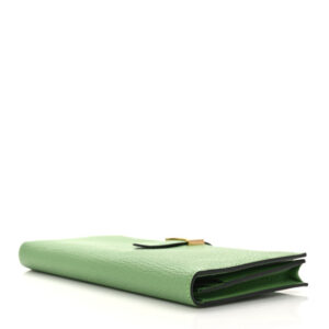 HERMES Chèvre Mysore Bearn Gusset Wallet Vert Criquet