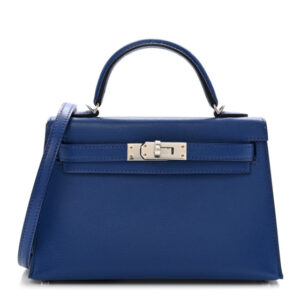 HERMES Chevre Chamkila Mini Kelly Sellier 20 Bleu