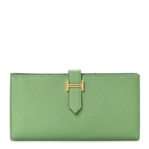 HERMES Chèvre Mysore Bearn Gusset Wallet Vert Criquet