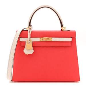 HERMES Chevre Mysore Bi-Color Kelly Sellier 25 Rose Texas Nata