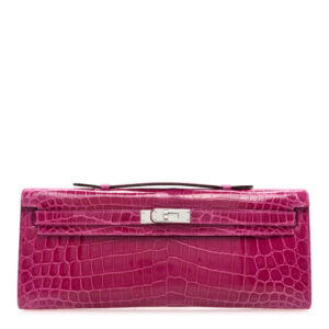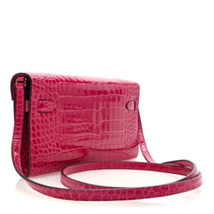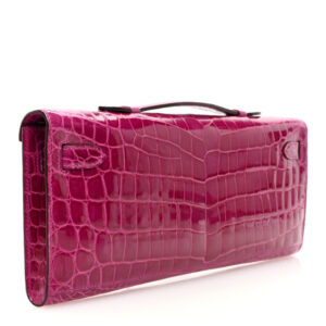 Length: 12.25 in Height: 5 in Width: 1.25 in Drop: 0.75 in Description This is an authentic HERMES Shiny Niloticus Crocodile Kelly Cut Pochette in Rose Scheherazade. This sleek clutch is crafted of luxurious ...