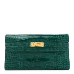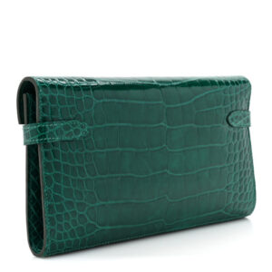 Size Base length: 8 in Height: 4.25 in Width: 1.5 in Description This is an HERMES Shiny Alligator Kelly Wallet Longue in Vert Emeraude. This stylish shoulder bag is finely crafted of alligator leather ...