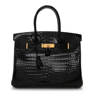 Length: 13.75 in Width: 7.5 in Height: 10.25 in Drop: 3.75 in Description This is the authentic HERMES Shiny Porosus Crocodile Birkin 35 in Black. This stunning Hermes Birkin is crafted of polished exotic ...