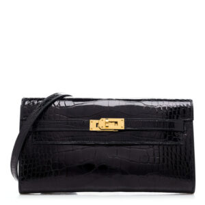 Size Base length: 8 in Height: 4.5 in Width: 1.25 in Drop: 20.5 in Description This is an HERMES Shiny Alligator Kelly Wallet To Go in Black. This stylish shoulder bag is finely crafted of ...