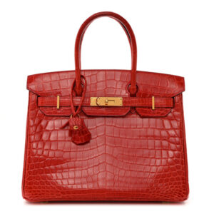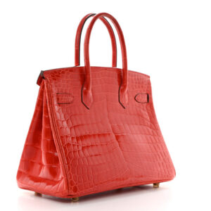 Base length: 11.75 in Height: 8.75 in Width: 6 in Drop: 3.5 in Description This is the authentic HERMES Shiny Niloticus Crocodile Birkin 30 in Geranium. This Hermes Birkin is crafted of glossy and ...