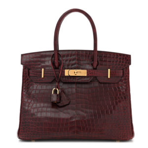 Base length: 11.75 in Height: 9.25 in Width: 6.25 in Drop: 4 in Description This is the authentic HERMES Shiny Porosus Crocodile Birkin 30 in Bordeaux. This stunning Hermes Birkin is crafted of polished ...