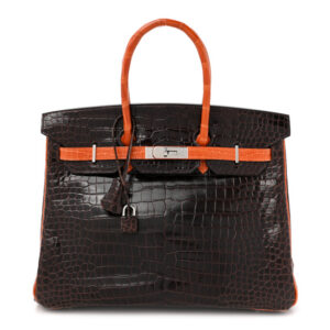 Base length: 13.75 in Height: 11 in Width: 7 in Drop: 4 in Description This is the authentic HERMES Shiny Porosus Crocodile Birkin 35 in Havane and Orange. This stunning handbag is crafted with ...