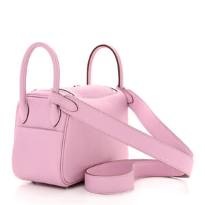Size Base length: 7.25 in Height: 4.75 in Width: 3.75 in Drop: 2.5 in Drop: 21 in This is an HERMES Taurillon Clemence Mini Lindy 20 in Mauve Sylvestre. This stylish mini shoulder bag is ...