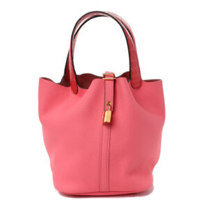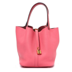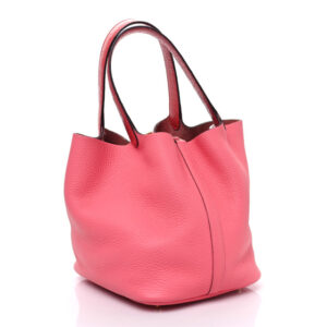 Size Base length: 8.5 in Height: 8.5 in Width: 7.75 in Drop: 6 in This is an HERMES Taurillon Clemence Matte Alligator Picotin Lock Touch 18 PM in Rose Azalee. This unique bucket bag ...