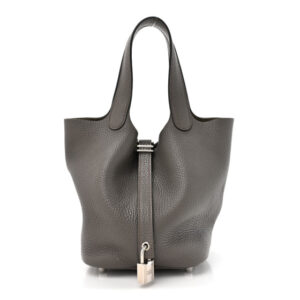 HERMES Taurillon Clemence Picotin Lock 18 PM Gris Asphalte