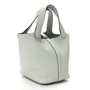 HERMES Taurillon Clemence Picotin Lock 18 PM Gris Neve