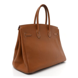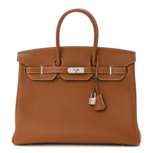 Base length: 13.5 in Height: 10.75 in Width: 7 in Drop: 5 in Description This is an authentic HERMES Togo Birkin 35 in Gold. This iconic handbag is finely crafted of grained golden brown ...
