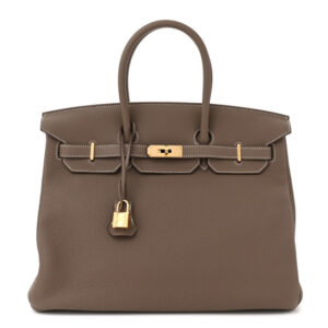 Base length: 14 in Height: 11 in Width: 7.25 in Drop: 4.25 in Description This is an authentic HERMES Togo Birkin 35 in Etoupe. This iconic handbag is finely crafted of grained calfskin leather ...