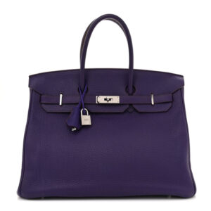 Base length: 13.5 in Width: 7.25 in Height: 11.25 in Drop: 4.25 in Description This is an authentic HERMES Togo Birkin 35 in Iris. This ultra-chic handbag is crafted of luxurious Togo calfskin leather ...