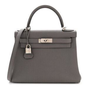 Size Base length: 11 in Height: 8 in Width: 4.75 in Drop: 4 in Drop: 17.5 in Description This is an HERMES Togo Kelly Retourne 28 in Etoupe. This stylish Kelly handbag classic is crafted of ...