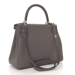 Length: 10.75 in Height: 8.25 in Width: 4.75 in Drop: 3.75 in Drop: 17.5 in Description This is an authentic HERMES Togo Kelly Retourne 25 in Gris Pale. This chic and iconic handbag is expertly ...