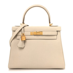 Size Base length: 10.75 in Width: 4.75 in Height: 8.25 in Drop: 3.5 in Drop: 17 in Description This is an authentic HERMES Togo Kelly Retourne 28 in Craie. This stylish Kelly handbag classic is crafted ...