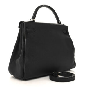 Length: 10.5 in Height: 8.25 in Width: 4.5 in Drop: 3.75 in Drop: 17.5 in Description This is an authentic HERMES Togo Kelly Retourne 28 in Black. This classic handbag is crafted of beautifully textured ...