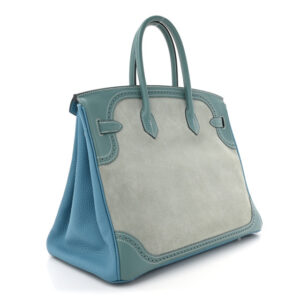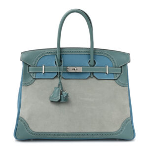 HERMES Veau Doblis Taurillon Clemence Evergrain Ghillies Birkin 35 Turquoise Ciel