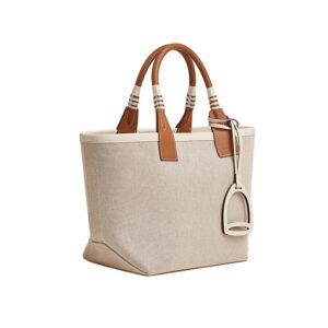 Hermes 24 new women’s beige white canvas with leather stirrup handbag H083611CKAA