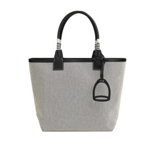 Hermes 24 new women’s gray black canvas with leather stirrup handbag H083610CKAC