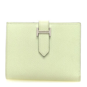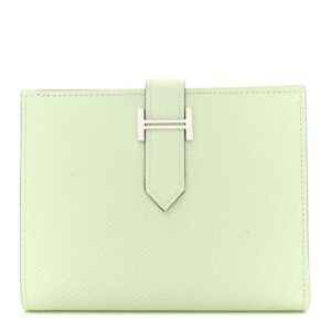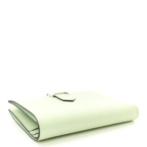 Size Base length: 4.75 in Height: 3.75 in Width: 0.75 in Description This is an HERMES Epsom Bearn Compact Wallet in Vert Fizz. This chic wallet is crafted of richly textured calfskin leather in ...