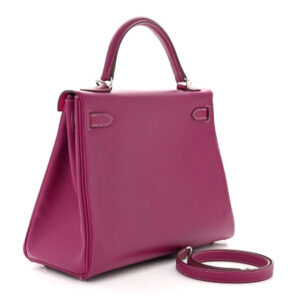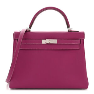 Base length: 12.5 in Width: 4.5 in Height: 9 in Drop: 3.25 in Description This is the authentic HERMES Epsom Candy Kelly Retourne 32 in Tosca and in Rose Tyrien. This stylish Kelly handbag ...