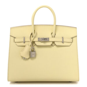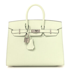 Base length: 10 in Height: 8.5 in Width: 5.25 in Drop: 2.5 in Description This is an authentic HERMES Epsom Birkin Sellier 25 in Vert Fizz. This rare bag is constructed of Epsom calfskin ...