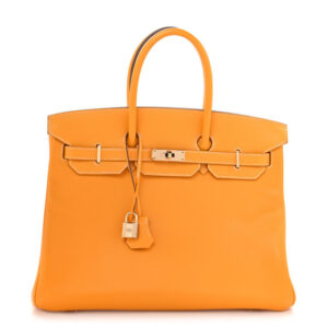 Base length: 13.75 in Height: 11.25 in Width: 7.25 in Drop: 4 in Description This is an authentic HERMES Epsom Candy Birkin 35 in Jaune D'Or and Feu. This stylish tote is beautifully crafted ...