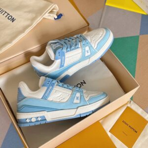 Louis Vuitton White and Sky Blue Sneakers Skateboard Shoes