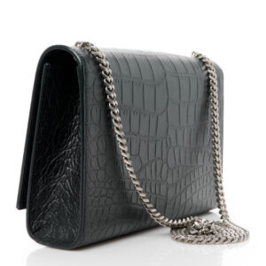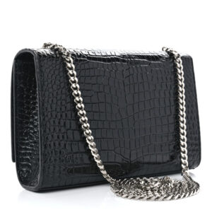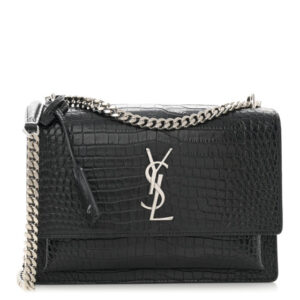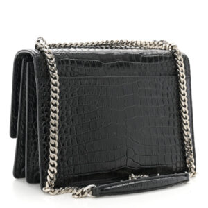 Saint Laurent Calfskin Crocodile Embossed Medium Monogram Sunset Black