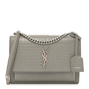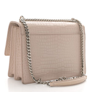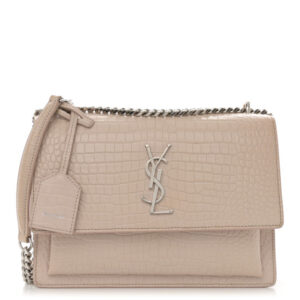 Saint Laurent Calfskin Crocodile Embossed Medium Monogram Sunset Blanc Vintage