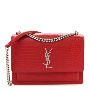 Saint Laurent Calfskin Crocodile Embossed Medium Monogram Sunset Rouge Eros