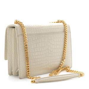 Saint Laurent Calfskin Crocodile Embossed Monogram Sunset Chain Wallet Blanc Vintage