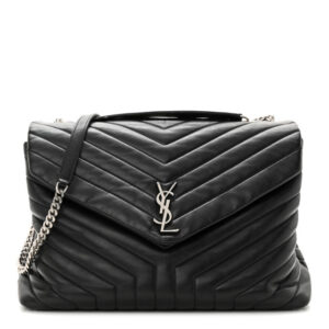 Saint Laurent Calfskin Y Quilted Monogram Large Loulou Chain Satchel Black