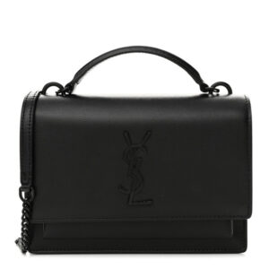 Saint Laurent Calfskin Monogram Sunset Top Handle Chain Wallet Black