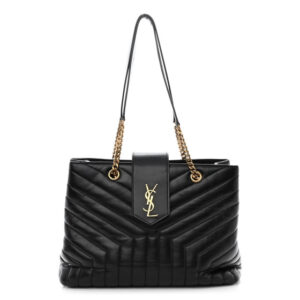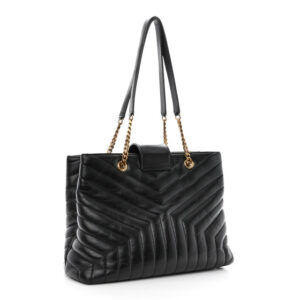 Saint Laurent Calfskin Y Quilted Monogram Large Loulou Shopper Black