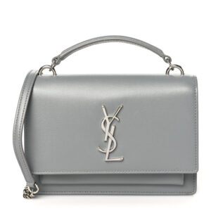 Saint Laurent Calfskin Monogram Sunset Top Handle Chain Wallet New Stone Grey