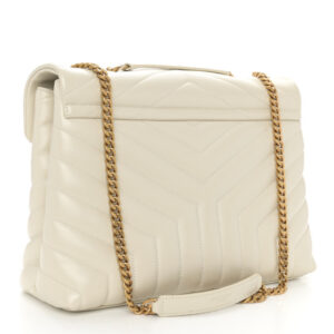 Saint Laurent Calfskin Y Quilted Monogram Medium Loulou Chain Satchel Crema Soft