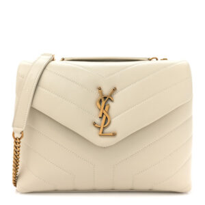 Saint Laurent Calfskin Y Quilted Monogram Small Loulou Chain Satchel Crema Soft