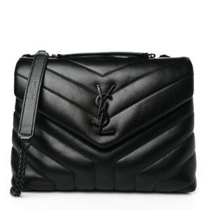 Saint Laurent Calfskin Y Quilted Monogram Monochrome Small Loulou Chain Satchel Black