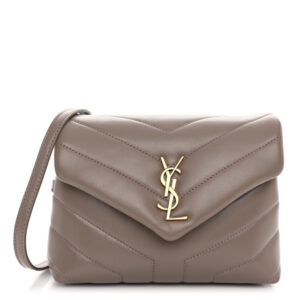 Saint Laurent Calfskin Y Quilted Monogram Toy Loulou Crossbody Bag Greyish Brown