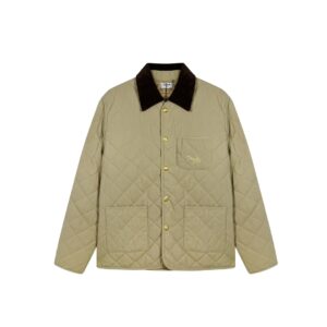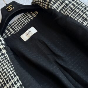 Celine khaki diamond check small cotton jacket with pockets and carriage embroidery