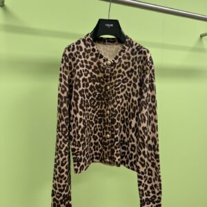 Celine leopard print cashmere round neck cardigan with gold buttons