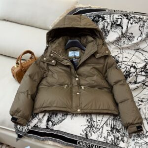 Prada autumn and winter new air cotton enamel metal triangle logo design hooded jacket