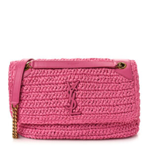 Saint Laurent SAINT LAURENT Raffia Calfskin Monogram Medium Niki Chain Satchel Bright Pink