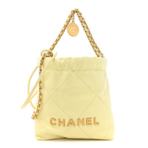 Shiny Calfskin Quilted Mini Chanel 22 Light Yellow