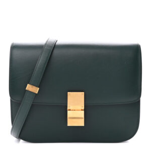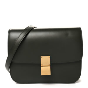 CELINE Box Calfskin Medium Classic Box Flap Bag Dark Green