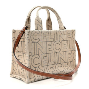 CELINE Canvas Calfskin All Over Print Small Cabas Thais Natural Tan