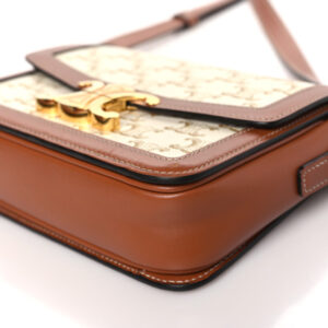 CELINE Calfskin Triomphe Canvas Teen Triomphe Bag Tan